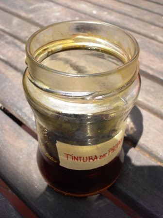Una parte es tintura de propóleo y la otra es ya el propoléo sin alcohol que utilizaré para conservar las cremas. La tintura es ideal para aplicarla en uso tópico. Ayuda a cicatrizar y desinfectar heridas